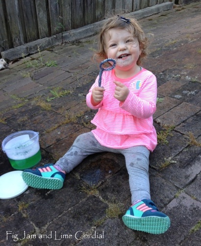 She sat on our driveway and tried to make bubbles last week, by blowing through her nose…