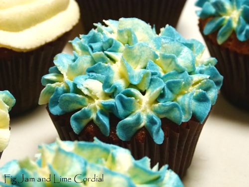 Wow – I am blown away by Luca’s shirt!! That is quite something! Your have conquered your new enthusiasm, Celia – the stunning icing on those cupcakes looks professional! And that chocolate sorbet – words fail me but a craving has kicked in!