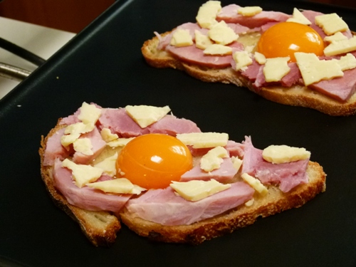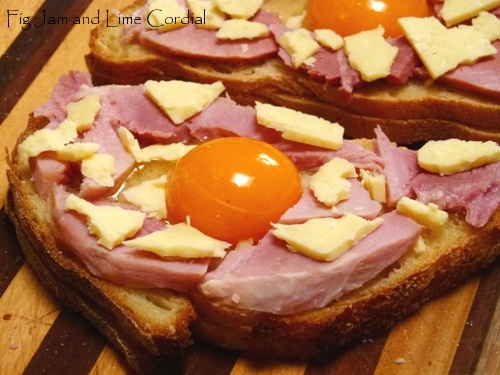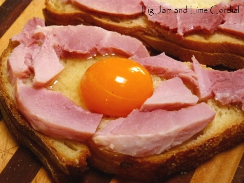 We started with thin slices of sourdough bread, ham offcuts from our ever generous friend Johnny, Dorset cheddar, butter and backyard eggs…