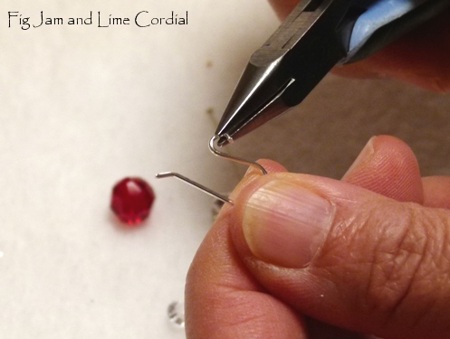 Using round nosed pliers, turn the top into a complete circle – with your fingers, bend the wire half way around the nose of the pliers, then readjust the pliers and complete the loop. This takes a bit of practice…