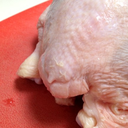 It’s located on the “bishop’s nose”, and it’s the gland that secretes oil which the bird uses to waterproof its feathers. I trim it off and discard it…