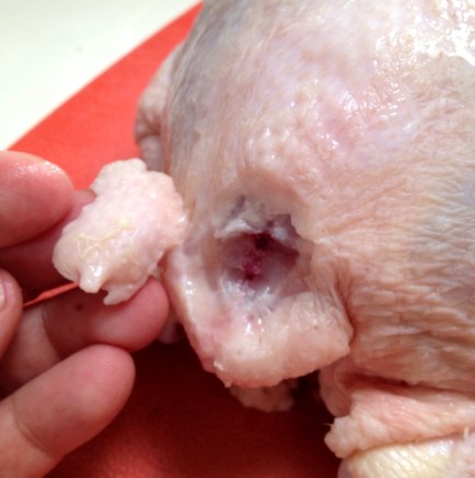 Pete said I wasn’t allowed to write…”In my kitchen there’s a chicken’s arse”… so the photos are in this post instead. Charlie asked me recently about prepping a goose for roasting. My Chinese mother insists that with any poultry, the oil gland of the bird should be removed before cooking.