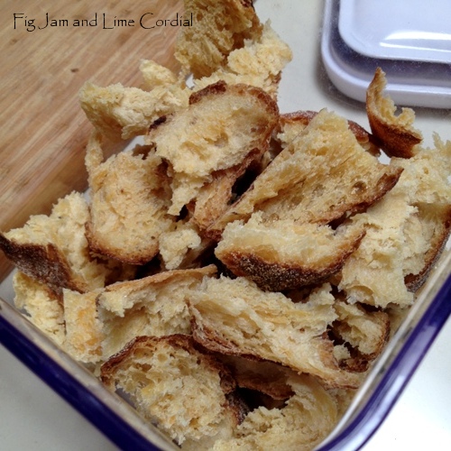 It was perfect timing too, because my clever friend Selma had given me a brilliant suggestion for using up our crunchy bread croutons. I make these whenever I have leftover sourdough – the bread is torn or sliced, then baked in a 100C oven for 3 hours until bone dry. Small Man loves them and eats them like crisps…