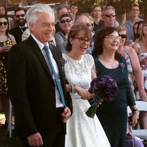 Pete and I were thrilled to attend the wedding of our friends Belinda Jane (BJ) and Matt in Victoria Park yesterday. Beej wept for joy as she was walked down the aisle by both her parents…