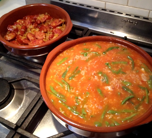 At least once a fortnight, we eat a Spanish-inspired Chica-inspired meal. The last one was Arroz Caldoso (soupy paella) with homemade confit pork and garden beans, accompanied by chorizo and onions. The boys are loving this style of food, and I’m loving being able to put all the dishes straight into the dishwasher after dinner…