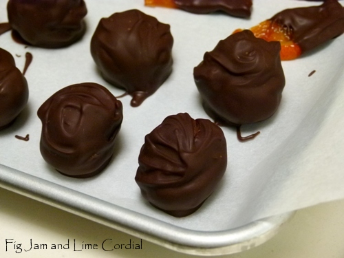 I blitzed together half the pudding, slices of candied orange and a good splosh of Cointreau, then mixed it all with melted dark chocolate. The filling was shaped into balls, then left to harden in the fridge before dipping in tempered chocolate. They turned out well!
