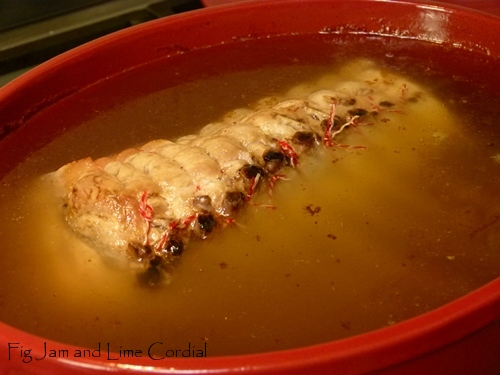 We confitted a rolled suckling pig belly roast in a sea of lard for five hours…