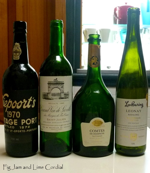 And on the subject of booze, here are just a few of the dead soldiers from our dinners at home. Vintage Taittinger 2000, 1993 Howard Park Cab Merlot, 1977 Taylor’s vintage port…