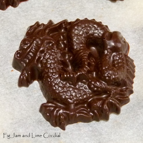 …two dark origin chocolate dragons (mix of Callebaut 811 54% and Tanzanie origin 75% dark)…