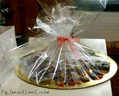 The large cake boards that I bought a couple of years ago have proven very handy for these gifts – I used a huge round gold one this time to match the praline and orange segments…