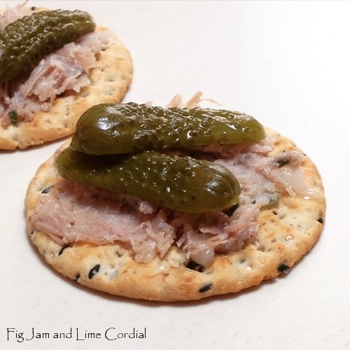 We served up our recently made confit duck rillette on grain crackers, topped with cornichons…