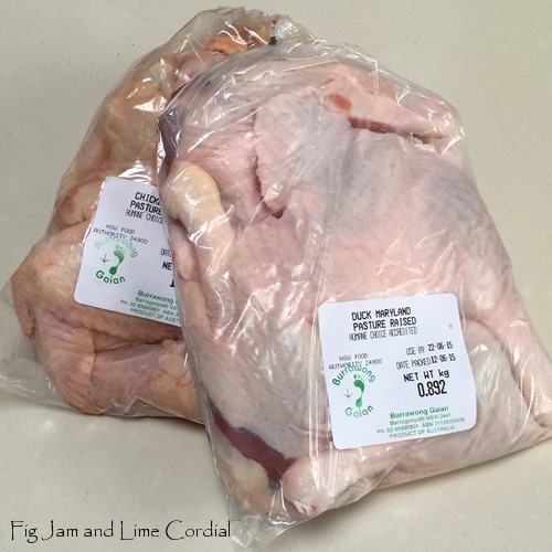 Burrawong Gaian were offering poussins, poultry pieces, as well as confit duck rillettes and an assortment of homemade pâtés. I bought a bag of pasture raised chicken wings and four duck marylands…