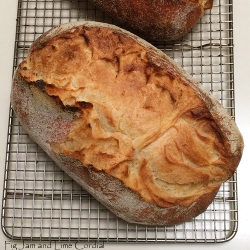 I experimented with baking my sourdough loaf upside down (seam side up) rather than slashing it, to allow it to burst naturally. I was quite happy with the result…