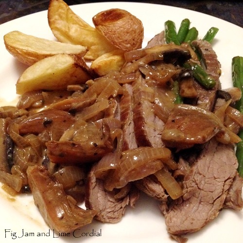 Following a Jamie Oliver recipe, we paired this with a mushroom sauce, baked potatoes and beans. The 500g steak was more than enough for the four of us…