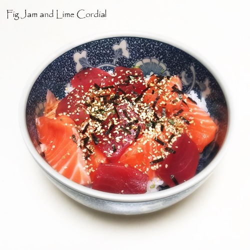 …is homemade chirashi sushi, with sustainably caught tuna and salmon purchased from Cleanfish Australia…