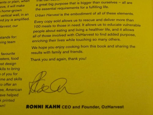 …is a copy of the Oz Harvest cookbook. This is actually my second copy – I bought one at lunch with Lorraine and Jaqi, but gave it to my friend Lisa for her 50th birthday. So I ordered another one from their website…