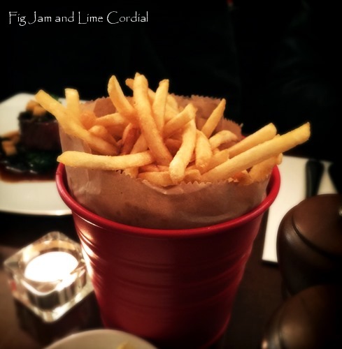 For sides, we ordered Petit Pois and Lardon, Ratatouille, and a bucket of Pomme Frites ($7)…