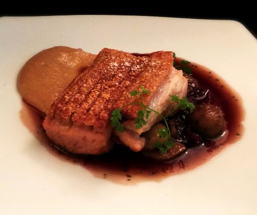 Big Boy chose the Confit Pork Belly with Honey Apple Purée, Braised Red Cabbage, Fig and Chestnut ($29). He’s always been a fan of confit pork, but he declared that this combination of flavours was the best he’d ever tried…