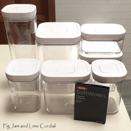 …is a set of Oxo pop top airtight containers. They work brilliantly! I bought them from Costco at a fraction of what it would have cost to buy each piece individually…