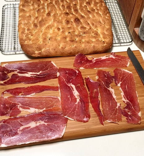 …was a packet of Jamon Iberico. I found it hidden on the bottom shelf of the fridge, and the boys scoffed it for lunch with sourdough focaccia…