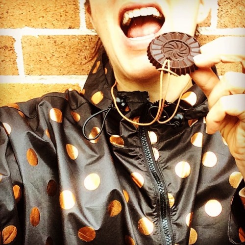 …and more small chocolate coins. Pete punched a hole in one of them and turned it into a pendant for Valentina…