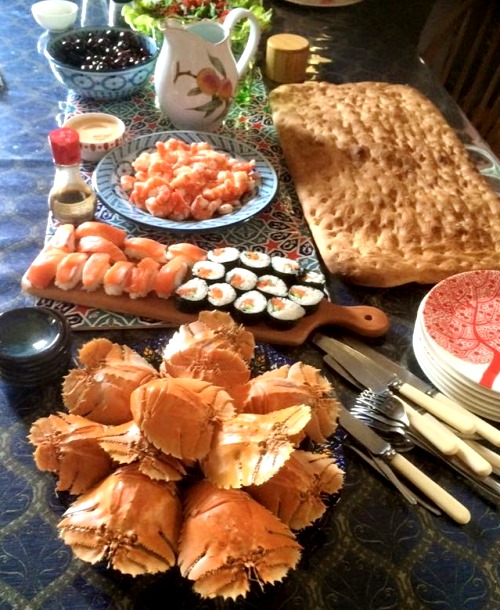 What a fantastic feast! And what a clever way to turn 1/2Kg of King Salmon sashimi into platters of sushi all could share! A wonderful Yule table for an even more warm family gathering . . . thank you for sharing and have a great time during the next few days . . .