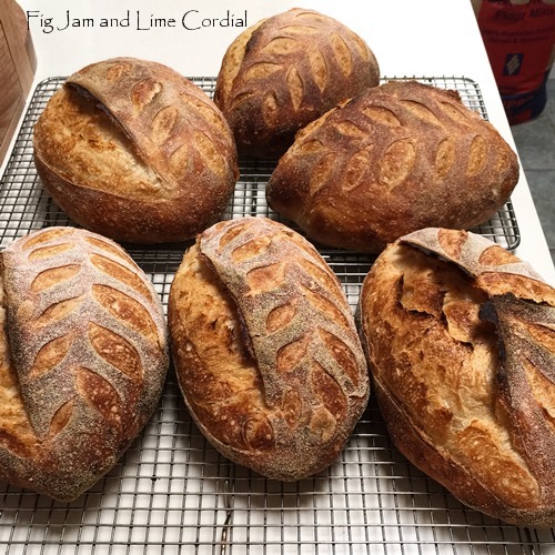 I don’t have any new bread formulas or techniques to share with you, as I’ve been enjoying the rhythm of baking familiar loaves each week. This was a double batch of our high hydration sourdough – five of the six loaves went to neighbours…