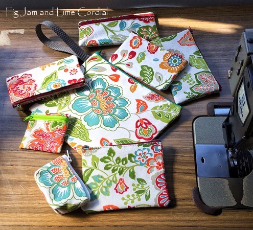 The manic bag making continues (I’ve tidied up my sewing room, so I can finally get to my machines). For my 50th birthday a couple of years ago, my friend Nic wrapped her gift in a gorgeous tea towel that was just too pretty to use. So last week I turned it into little zippered bags…