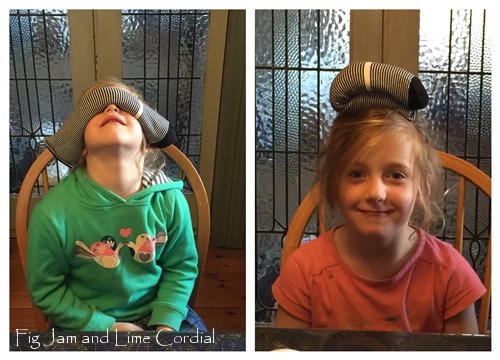 I filled another sock with flossy salt to form a soothing eye pad (note: apparently you should never heat salt in the microwave). I chilled it in the fridge for an hour or so, then my young friend Grace tested it out for me…