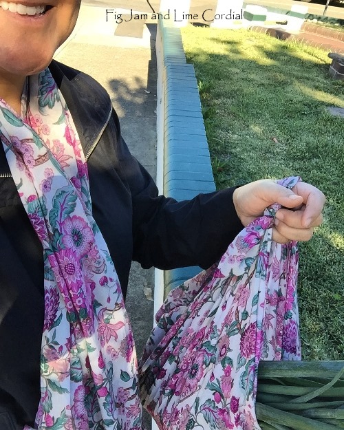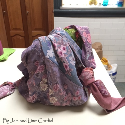 My matching scarf and furoshiki wrapped veg gave the neighbours a good giggle…