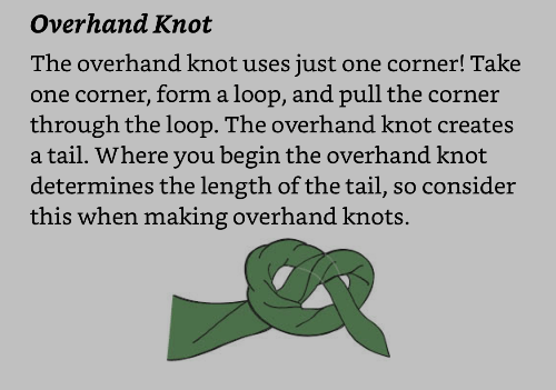Step 3: tie the other two corners together in a square knot (see above or the more detailed instructions here)…
