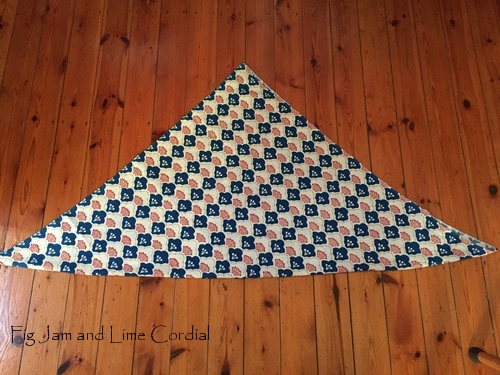 Step 1: fold the cloth in half on the diagonal, right sides out…