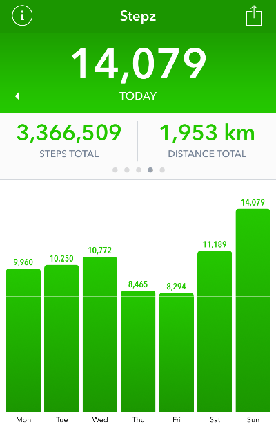Here are my stats for the year – 3,366,509 steps walked and 1,953km covered. That’s a daily average of 9,223 steps and 5.35km per day…