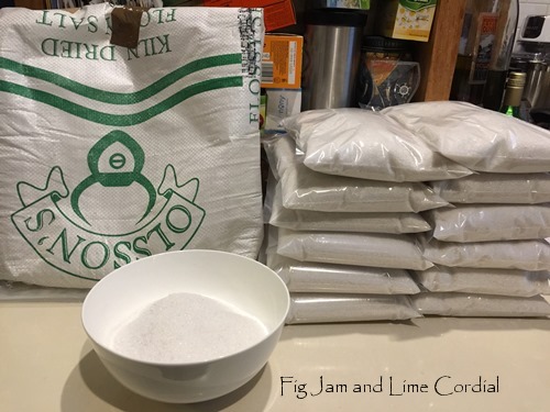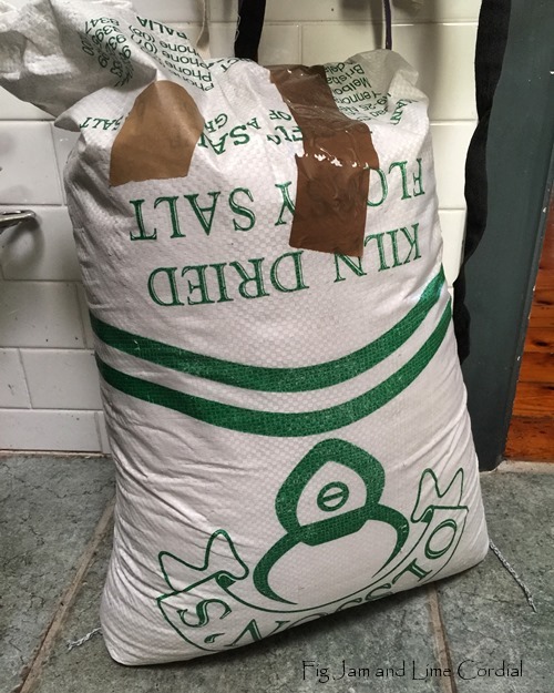 You see, I couldn’t…couldn’t…pass up the opportunity to buy a second torn 25kg bag of Olsson’s Australian kiln dried flossy salt for $5. I know you all laughed heartily when I bought the first oneΒ six months ago, but I’ve given away and used up more than half of it. I’ve baked mountains of bread, made a dozen jars of preserved lemons, and little pots of salt hand scrub now sit at every sink.