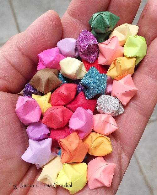 I used to have jars full of these! As well as tiny paper cranes and little grasshoppers made from palm leaves. I can’t wait until my children get dexterous enough to share my origami passion!