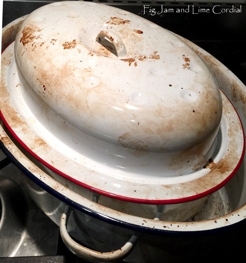 7. If using bannetons, carefully turn the loaves onto sheets of parchment and slash a long cut on the top, either in the middle or offset to one side. Try to avoid any bits of fruit. Place each loaf into an enamel roaster and cover with lid. Bake in the oven for 20 minutes.