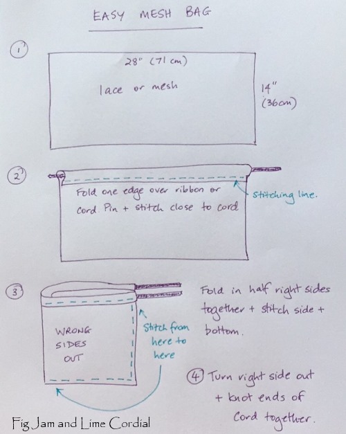 Thank you for the inspiration. I promptly went to my sewing box and made 6 mesh bags for the fruit and veg (using your pattern) and a carry bag for my friend out of the same mesh curtain material to tuck into her handbag. I have one given to me in 2008 that folds up into a tiny parcel, so useful if I find myself doing a bit of market shopping. I live on the south coast NSW so getting to that store you mentioned isn’t on my agenda but it looks so interesting. My NY resolution included getting the carry bags out of the boot before going into the market and now with my fruit and veggie bags as well we’re all set to stop bringing home plastic bags. Best wishes