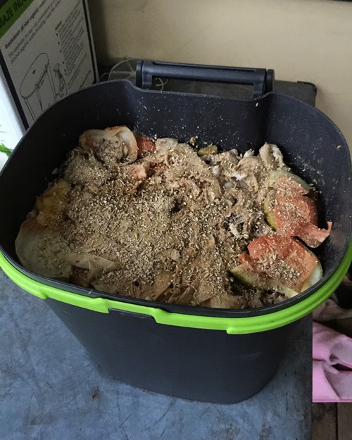 Firstly, an update on our attempts to try and reduce our household waste. It’s been four weeks now, and we’ve filled our first bokashi bin. It will sit on the back deck under cover for a further three weeks, during which time the contents should ferment into a compostable form.