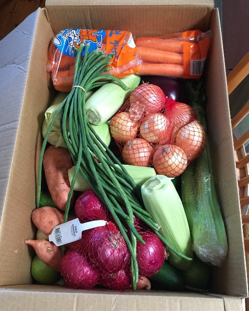 I placed my first online order with Harris Farm and was delighted with how my goods arrived. Apart from the carrots and onions (which I’d ordered in bags – obviously I still have a lot to learn) and the half a celery, the remaining veg were all loose in the cardboard box. They’d clearly made an effort to carry through their plastic-free stance to home delivery.