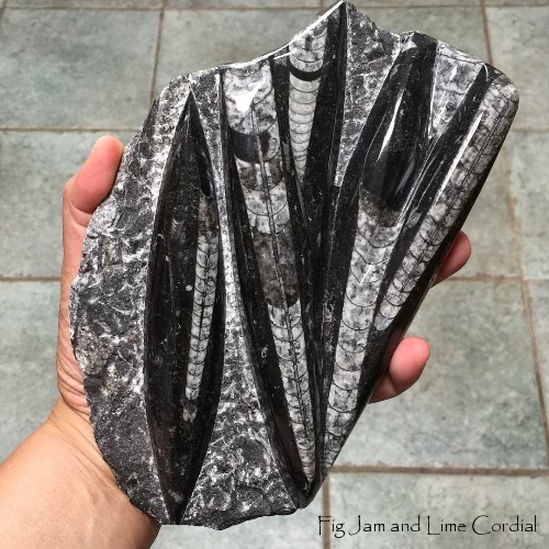 …and traded them with Tom of Living Fossil Gallery for a $15 discount on this 400 million year old orthoceras plate. If you ever want to get into fossil collecting, orthocerases are a great place to start. They’re very affordable, and highly underrated in my opinion…