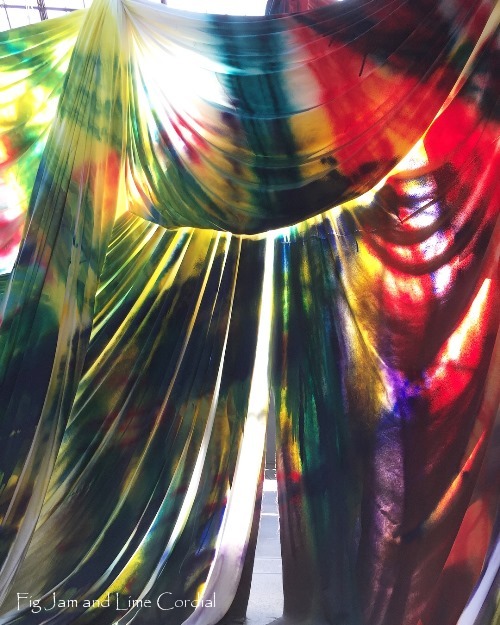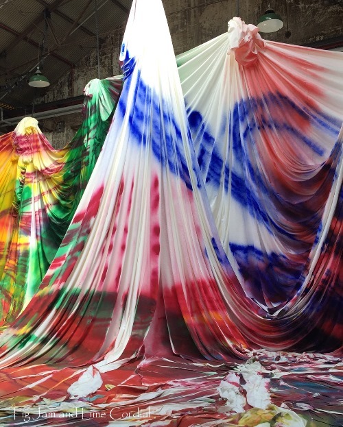 We visited Carriageworks a couple of weeks ago to view the Katharine Grosse installation. It was magnificent, but we were all troubled by the massive amount of fabric used – 8,000 metres of super heavy duty canvas. And given that the work was spray painted after the fabric was hung, it would be impossible to rehang it anywhere else. One of the volunteers told us that the fabric was all going to be unpicked and then shipped (!) back to Germany to the artist. I hope she turns it into something else…