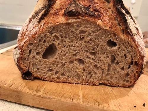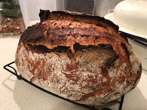 A cooking class update on lovely Stephen, who nearly set fire to his kitchen baking his first solo loaf of sourdough. His second loaf was rustic but serviceable.