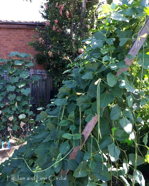 Well, Pete has, at least. They need lots and lots of water. We planted a dozen seeds this year, on the basis that they never all grow…but they did. So now we have a mountain of snake beans, which we’re eating at every meal and freezing for winter…