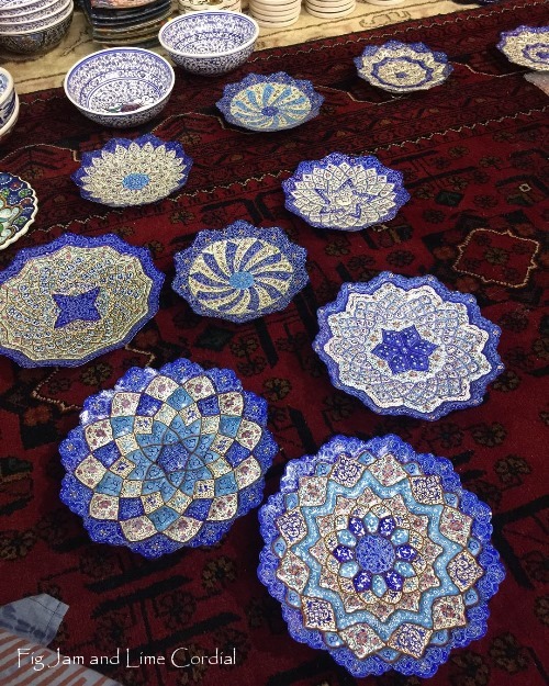 I’m trying to improve. Over the course of this year, most of my day to day non-consumable purchases have come from the Salvos Stores or Reverse Garbage. I save my dollars to add to my fossil collection, or to indulge in traditional arts and crafts, like these gorgeous Iranian hand-beaten hand-painted copper plates from Isfahan (which I found in a wonderful shop at 64 Arab Street, Singapore, in case anyone is interested. Ask for Bobby!)…