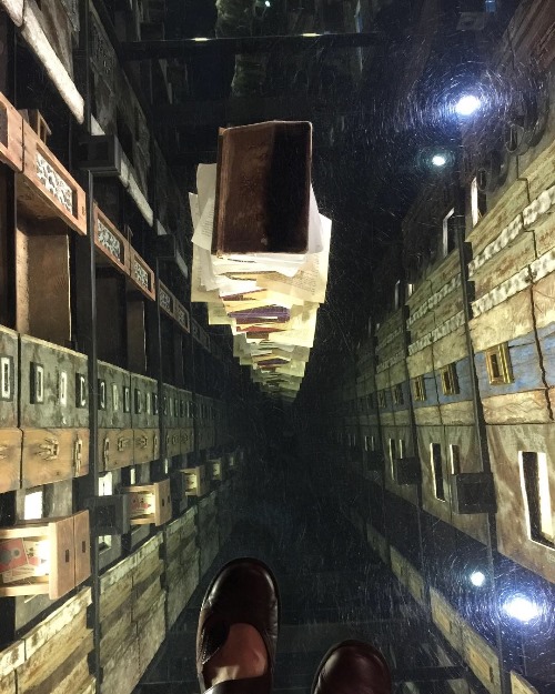 My favourite work of the day was Passages and Bridges (2018) by Filipino artist Mark Justiniani. It was structured as a perspex bridge that the viewer walked on, over a seemingly bottomless abyss filled with books and other memorabilia.