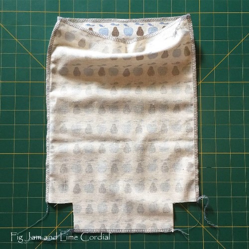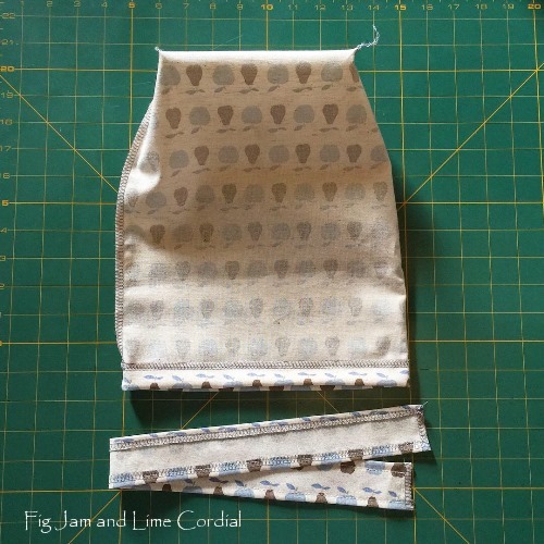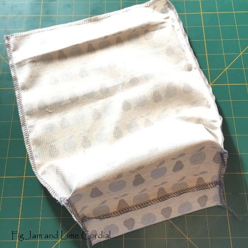 Sew the bottom and side seams, then overlock around the top. I overlocked all the seams just because it’s easier, but you could straight stitch and finish them if you prefer…