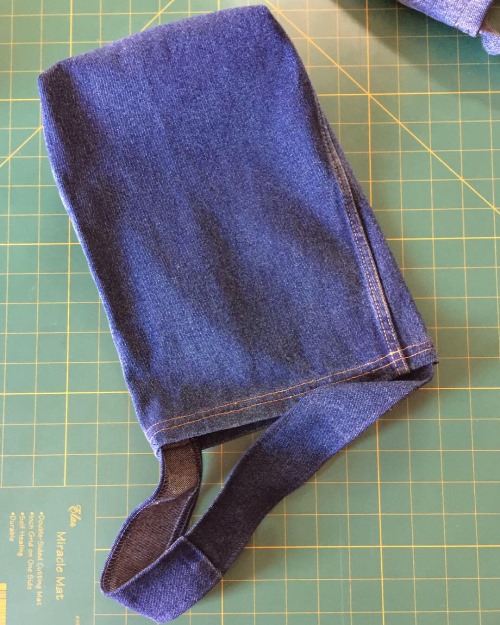 If you’re a bit more experienced and want to try making the bag from old jeans, you’ll need to make sure the leg circumference is wide enough (most skinny jeans won’t work). Make sure you have a sturdy sewing machine and walk the needle over the thick seams or risk breaking it (I learnt that the hard way).