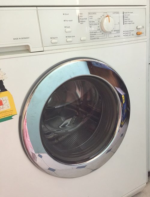 After fourteen years of loyal service, our Miele front loader finally stopped working. It was very expensive to repair it, but even more expensive in earth terms to replace it. So we paid lovely Andy to put it back together again, and now it’s running smoothly, thanks to new shock absorbers and working valves…