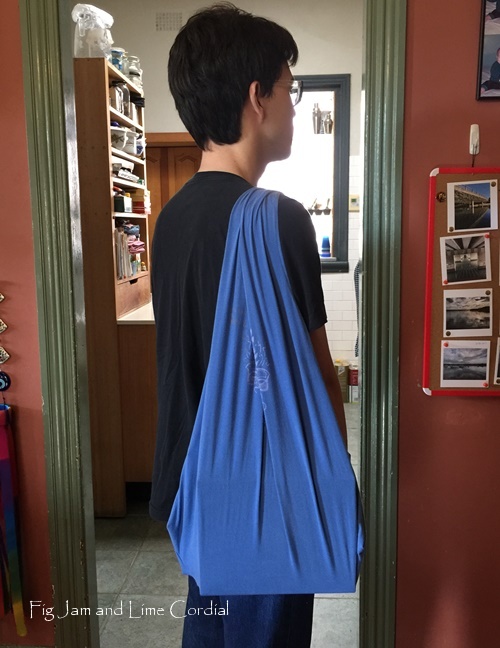 Yes, he knew! He did a big clean out and gave me five tshirts that he needed to retire – I’ve made three bags so far! They’re great fun because of the designs actually – it makes each one quite unique! :)