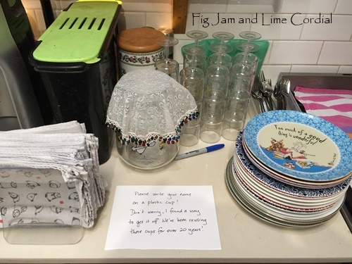 Our Sustainability Working Bee was as waste-free and low carbon as we could make it – we used hard plastic glasses that I’d bought from Reverse Garbage in the late 90s. They get pulled out whenever we have a gathering of more than a dozen people. I figured out yesterday that a small melamine cleaning cube will scrub permanent marker off the plastic, which meant we could write names on them…